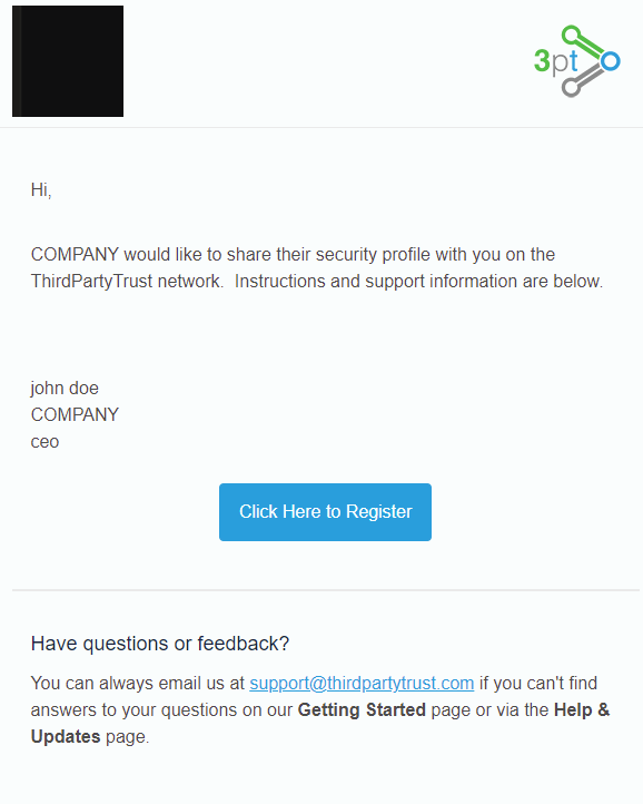 - Enter the email address of the user you want to invite to see your Security Profile. Keep in mind that the email domain must belong to the customers' company.